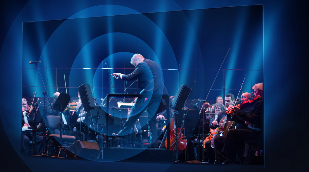 – Khi nghe nhạc, xem phim hay trải nghiệm trận bóng đá của đội bạn yêu thích, âm thanh được tạo ra sẽ làm người xem bị “hớp hồn” ngay giây đầu tiên bởi công nghệ Acoustic Multi-Audio+ điều chỉnh âm thanh đồng bộ với hành động, chất âm phát ra trực tiếp từ màn hình cho cảm nhận âm thanh chính xác, sống động ngoạn mục. Với loa tweeter lắp trên khung viền cho chất âm được truyền tải rộng khắp, vang xa và bùng nổ hơn.