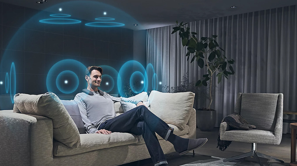 – Ngoài ra, khi bạn liên kết tivi với loa thanh Sony A-Series, công nghệ Acoustic Center Sync sẽ giúp XR-65X95L trở thành loa trung tâm để bản nhạc bạn đang xem phát ra hoàn toàn khớp với biểu cảm của ca sĩ trên màn hình. Nếu dùng tivi với loa choàng cổ SRS-NS7 và thiết bị chuyển tiếp không dây WLA-NS7 nhờ công nghệ 360 Spatial Sound Personalizer, bạn sẽ được trải nghiệm không gian âm thanh vòm giả lập vô cùng lôi cuốn, sinh động.