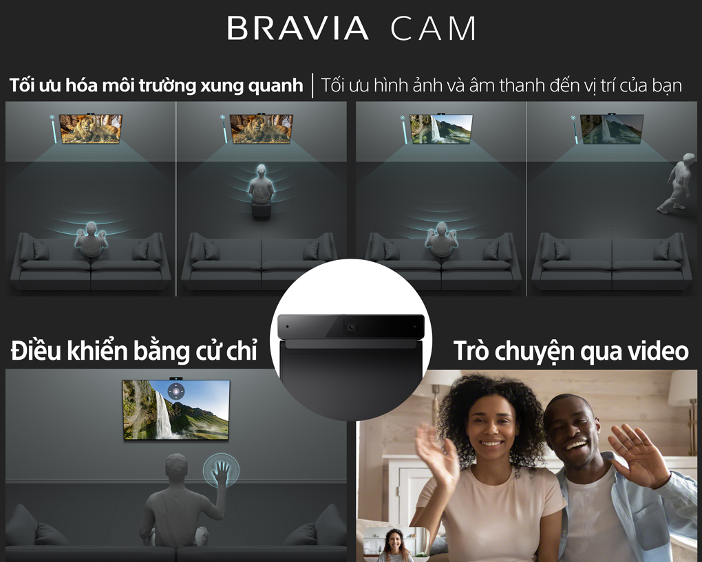 – Mặt khác, Google Tivi Sony XR-65X95L còn được hỗ trợ một tiện ích thông minh khác là Bravia CAM (cần mua thêm camera để sử dụng). Phần mềm cho phép bạn thực hiện các cuộc gọi video trực tuyến chân thực, có tính năng điều khiển bằng cử chỉ cho người dùng điều chỉnh âm lượng, chuyển kênh dễ dàng như một cái búng tay. Tính năng cảnh báo khoảng cách cung cấp khoảng cách xem được đề xuất cho trẻ để bạn tiện cài đặt, ngăn chặn trẻ xem tivi quá gần, gây hại cho mắt.