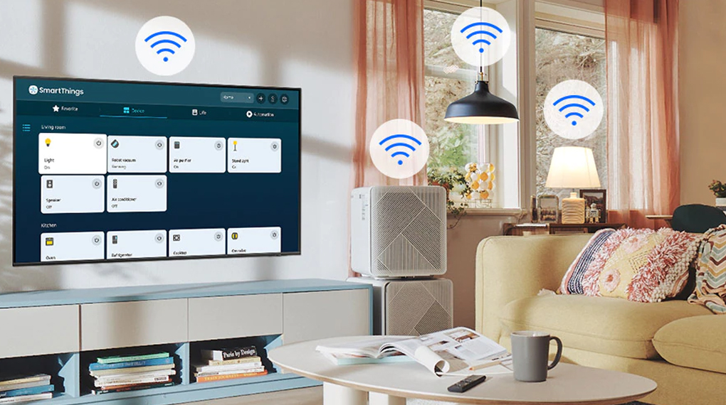 – SmartThings liên kết các thiết bị điện tử trong nhà và cho phép bạn quản lý, điều khiển thống nhất qua Smart tivi giúp quá trình sử dụng thêm tiện lợi.