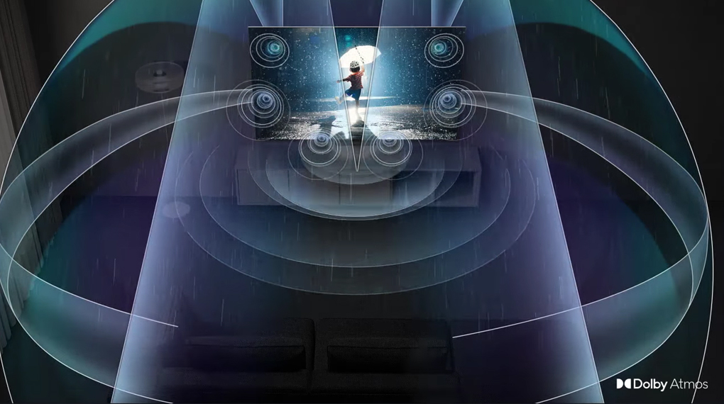 – Công nghệ Dolby Atmos và OTS tái tạo âm thanh 3D theo dấu chuyển động hình ảnh cho bạn cảm nhận được sự chân thật trong từng thước phim, chương trình thể thao mà mình theo dõi.