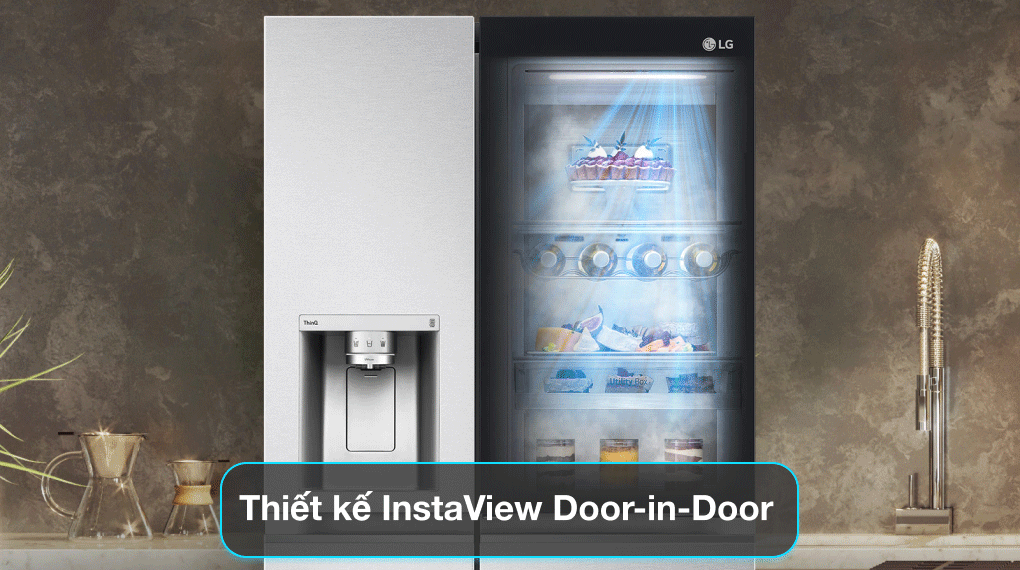 – Đặc biệt là thiết kế InstaView Door-in-Door cải tiến 25% diện tích mặt kính. Chỉ cần gõ nhanh 2 lần thì chúng ta có thể nhìn thấu bên trong. Giảm thiểu sự thất thoát khí lạnh đi 41%, giúp cho rau quả được tươi lâu hơn.