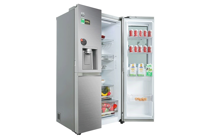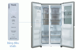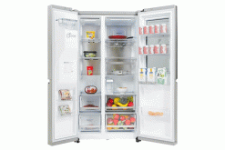 – Đây là mẫu tủ lạnh thiết kế Side by side với chất liệu cửa tủ bằng thép không gỉ, màu bạc sang trọng.