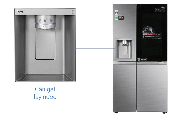 – Tủ lạnh có ngăn lấy nước và lấy đá ngoài tiện lợi mà không cần mở cửa tủ tránh thất thoát hơi lạnh.
