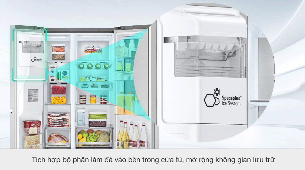 – Hệ thống làm đá tinh gọn SpacePlus™ trên cánh cửa tủ giúp tiết kiệm diện tích.